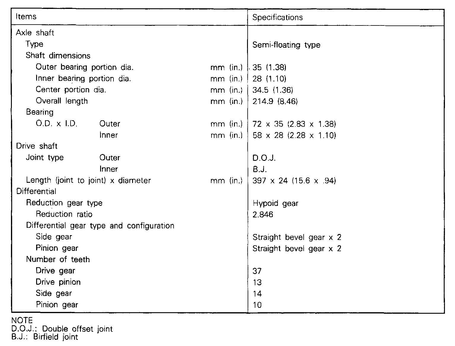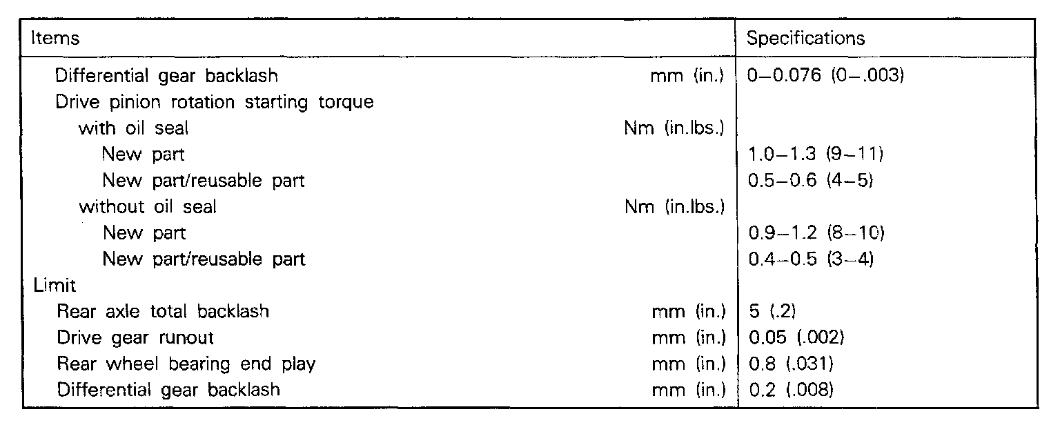 Rear Axle (AWD) Up To 92, Differential Standards & Limits (2 Of 2):