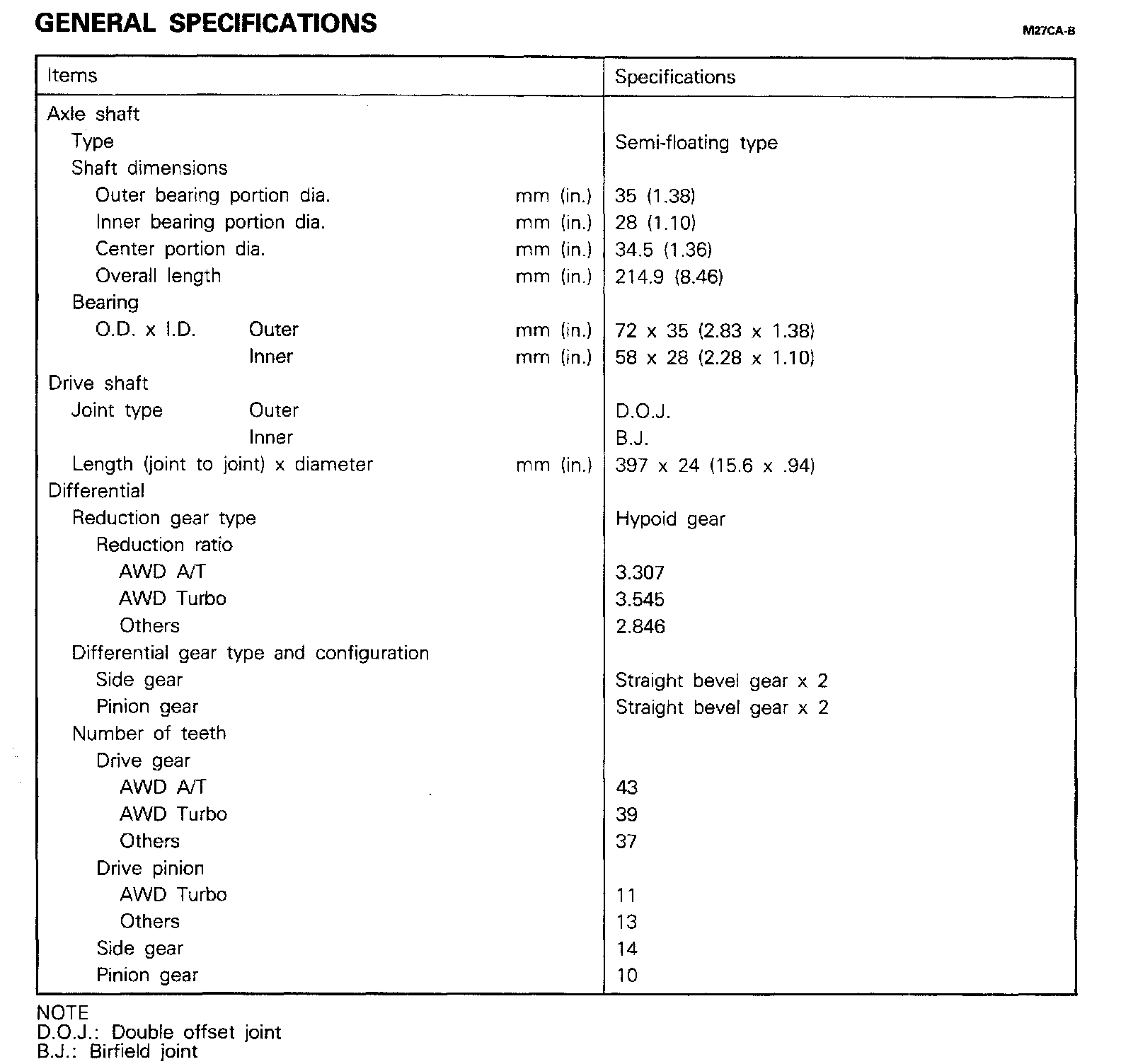 W5M33-2 5-spd M/T, Differential Standard Values: