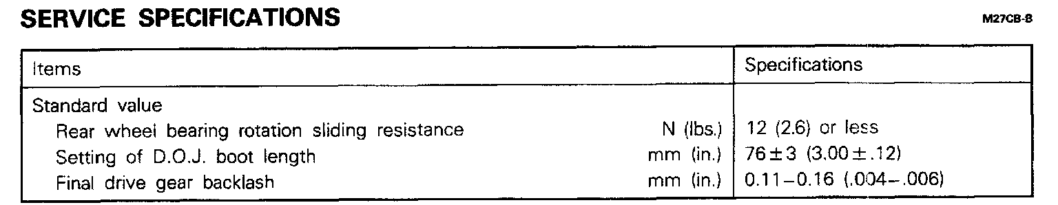 Rear Axle (AWD) Up To 92, Differential Standard Values (1of 2):