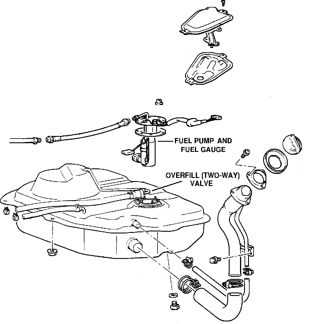 The overfill limiter is mounted in-line, in the vapor line, at the forward end of the fuel tank.