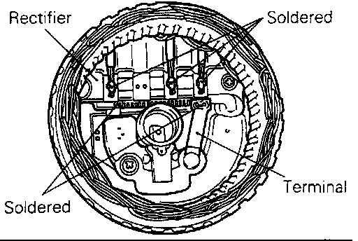 (2) When removing rectifier from brush holder, unsolder two soldered points to rectifier.