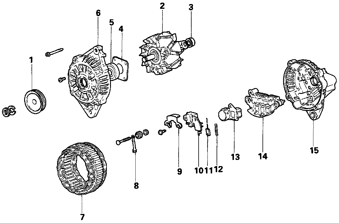 (2) After removing the nut, remove the pulley and front bracket from the rotor.