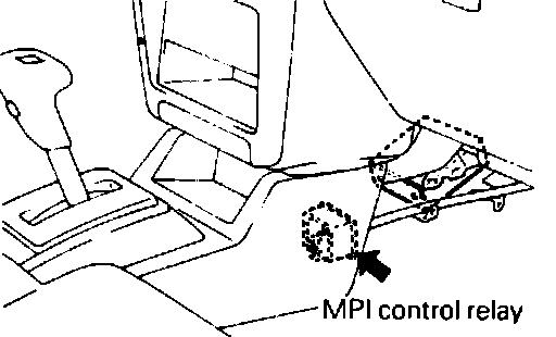 The control relay, located in front of the center console, is both and input and output device for the ECU. It supplies the positive circuit to the EGR and purge solenoids, air flow sensor, ECU and injectors. The operation of the fuel pump is controlled by the ECU through the Control Relay. While cranking, positive current (supplied by the ignition switch "START" position) flows through coil L2 to close switch S1. As a result, the fuel pump is energized. Additionally, positive current (supplied by the ignition switch "ON" position) flows through coil L3 to close switch S2. As a result, positive current is supplied to the ECU, Air Flow Sensor (AFS), injectors, EGR solenoid, Purge Control solenoid and the L1 coil of the S1 switch. After the engine starts and the key is returned to the "ON" position, the ECU provides the ground to the L1 coil, thus allowing the battery current to close switch S1. As a result the fuel pump continues to be supplied power, but is now under the full control of the ECU. In the event of engine stall or other abnormal conditions, the ECU interrupts the ground, opening the L1 coil and interrupting the fuel pump power circuit.