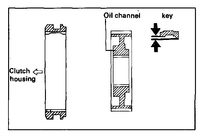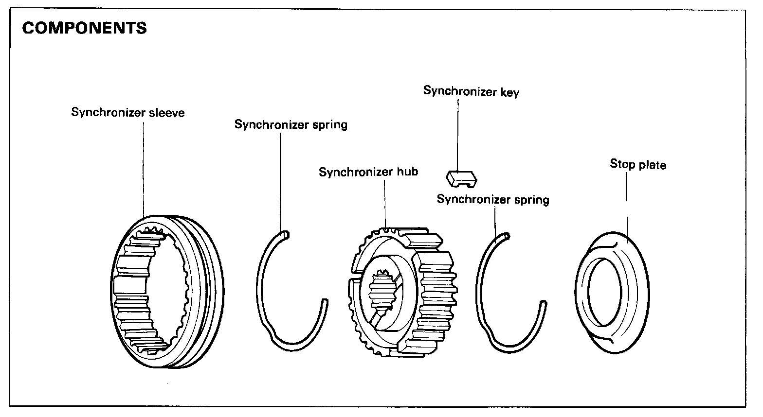 1. Assemble the synchronizer hub, sleeve and key noting their direction.