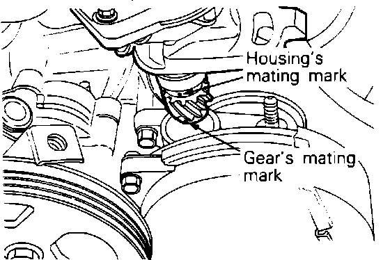 19. Align the drive gear with the mark made at the time of disassembly, and install the gear to the distributor shaft.