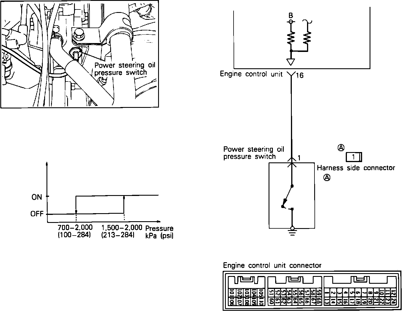 1. Disconnect the power steering pressure sensor connector and turn the key to the ON position.