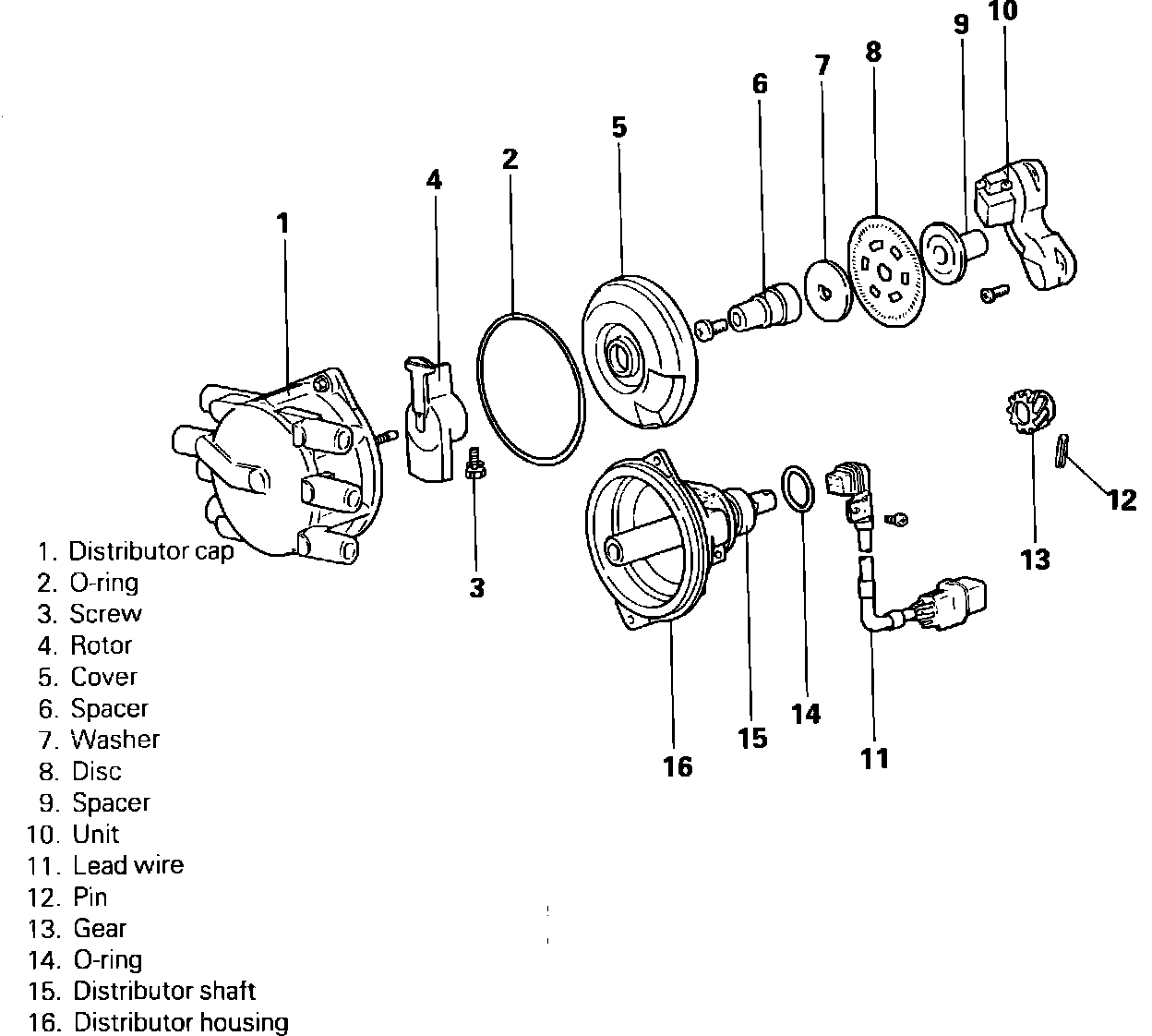 1. Align the drive gear with the mark made at the time of disassembly, and install the gear to the distributor shaft.