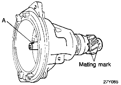 2. When aligning the drive gear's mating mark to the housing's mark, be sure that the notch "A" at the rotor end of the shaft is in the position shown in Fig. 1. If no errors where made in either the marking or alignment procedures the pin holes should align properly. Drive in a new spring pin, insuring that the slit in the pin is at a 90° to the distributor shaft.