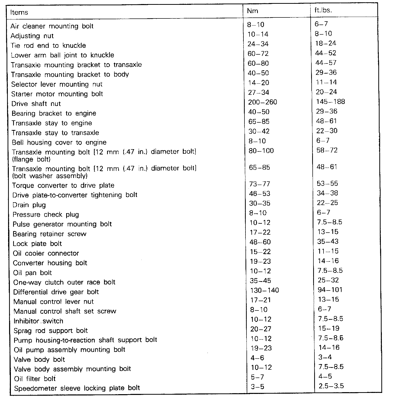 F4A23 4-spd A/T, Transaxle Torque: