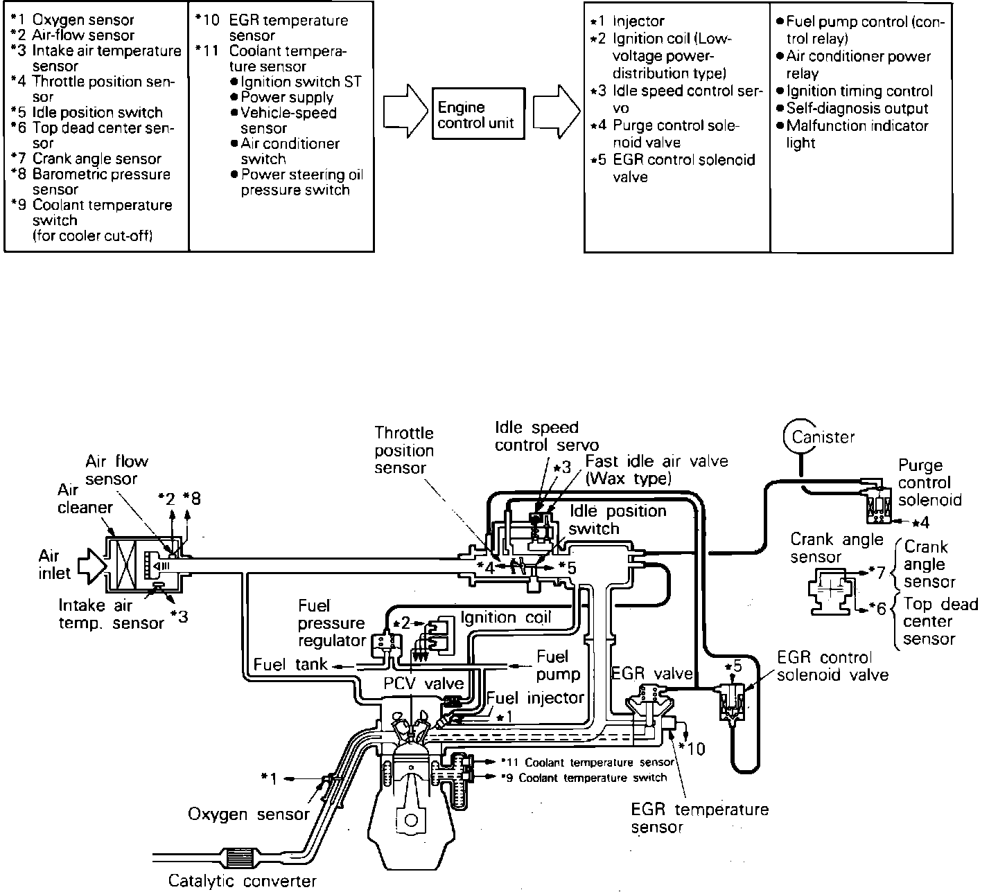 The ECI system is made up of an electronic control unit (ECU), various sensors and output devices. This system controls engine operation (i.e. A/F mixture and ignition timing) to reduce pollutants while maintaining optimum driveability conditions and reducing fuel consumption.