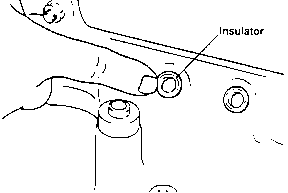 6. When installing the fuel rail, check to be sure that the rail insulator is correctly inserted into the installation holes. Tighten the mounting bolts.
