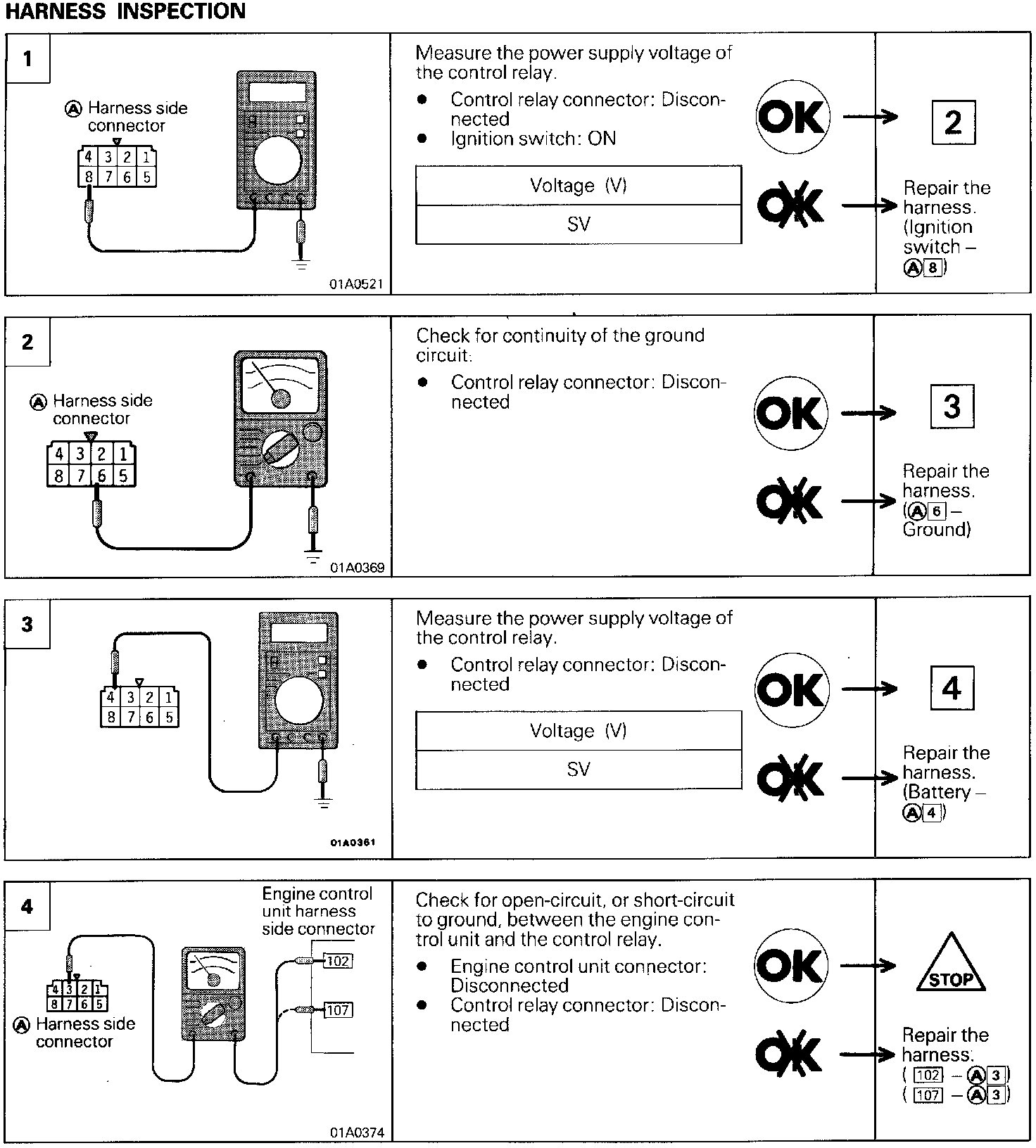 ^ While the ignition switch is on, battery power is supplied to the engine control unit, the injector, the air flow sensor, etc.