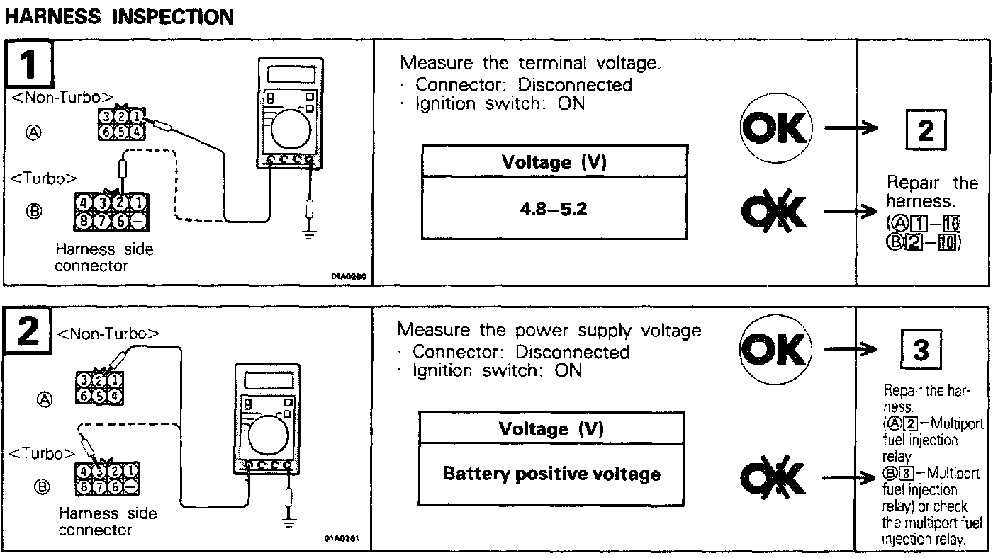HINT 1: If the engine sometimes stalls, try starting the engine and shaking the volume air flow sensor harness. If the engine then stalls, incorrect or improper contact of the volume air flow sensor connector is the probable cause.