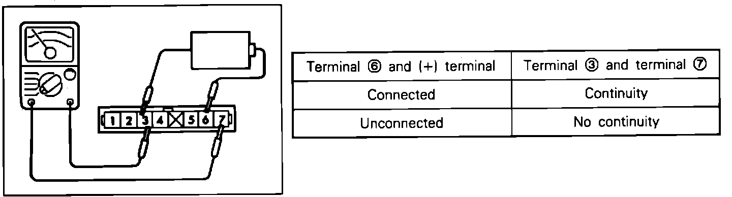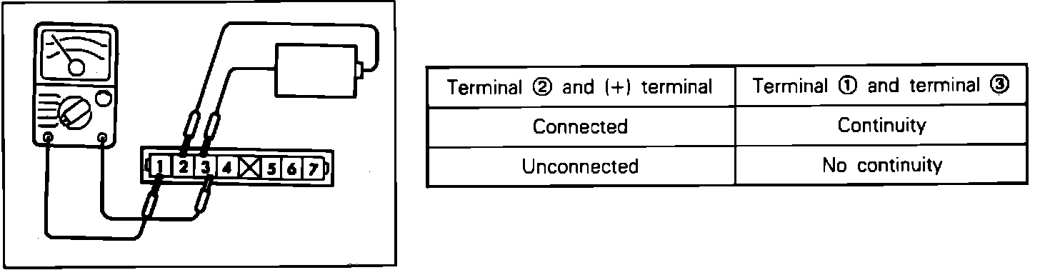 3. Check for continuity between terminals 7 (+) and 3 (-).