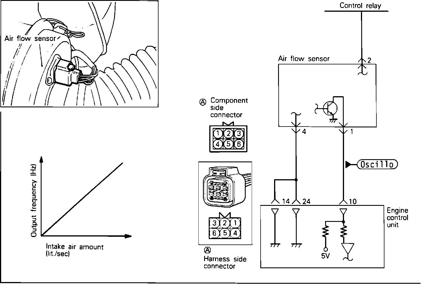 The Air Flow Sensor (AFS) measures the amount of air entering the intake manifold to provide the ECU with precise intake volume information. The AFS is a "Karman Vortex" type which measures the intake air volume.
