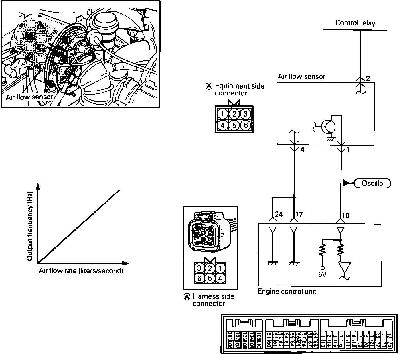 The Air Flow Sensor (AFS) measures the amount of air entering the intake manifold to provide the ECU with precise intake volume information. The AFS is a "Karman Vortex" type which measures the intake air volume.