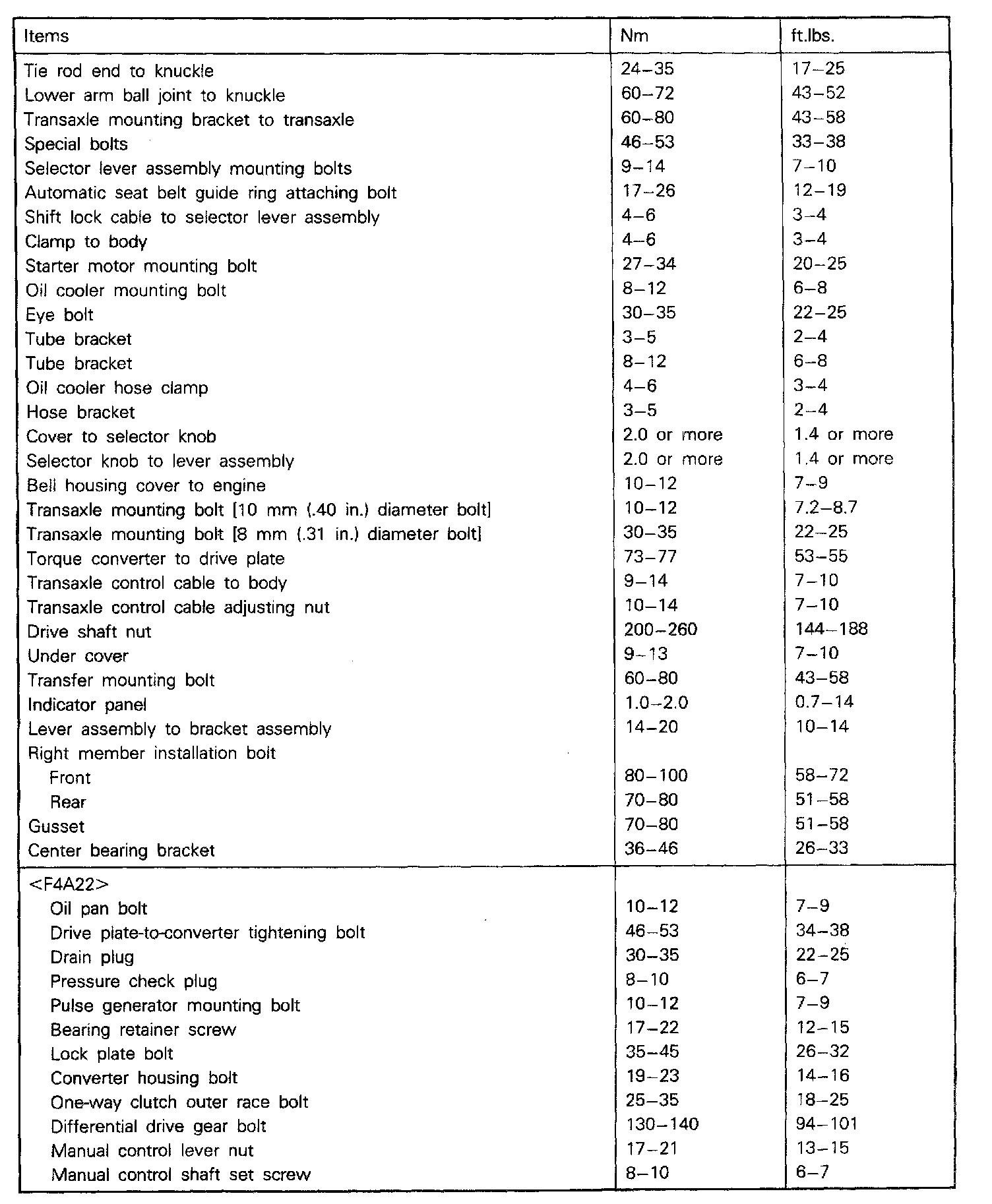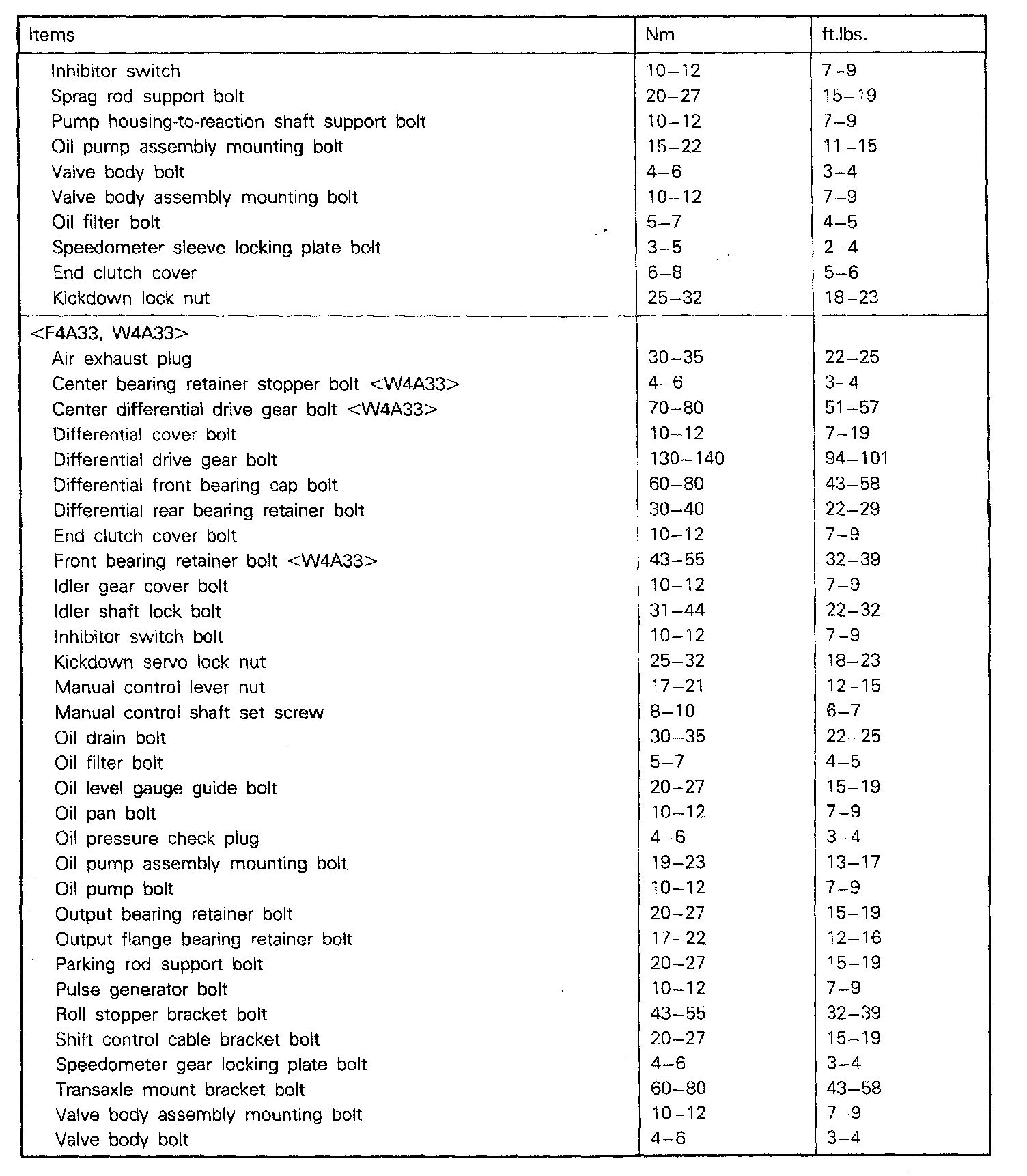 F4A33/W4A33 4-spd A/T, Transaxle Torque (2 Of 3):