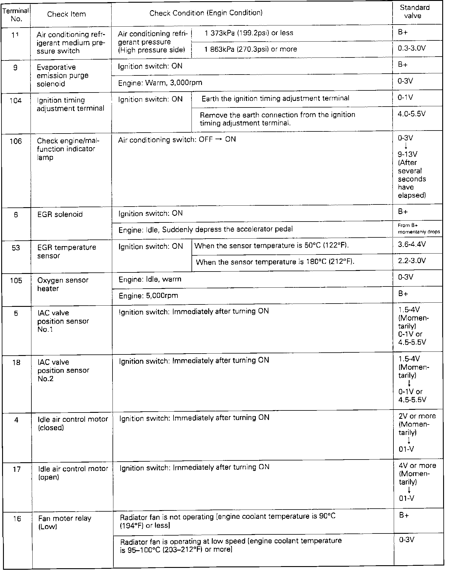 ECU TERMINAL VOLTAGE CHART 3/3