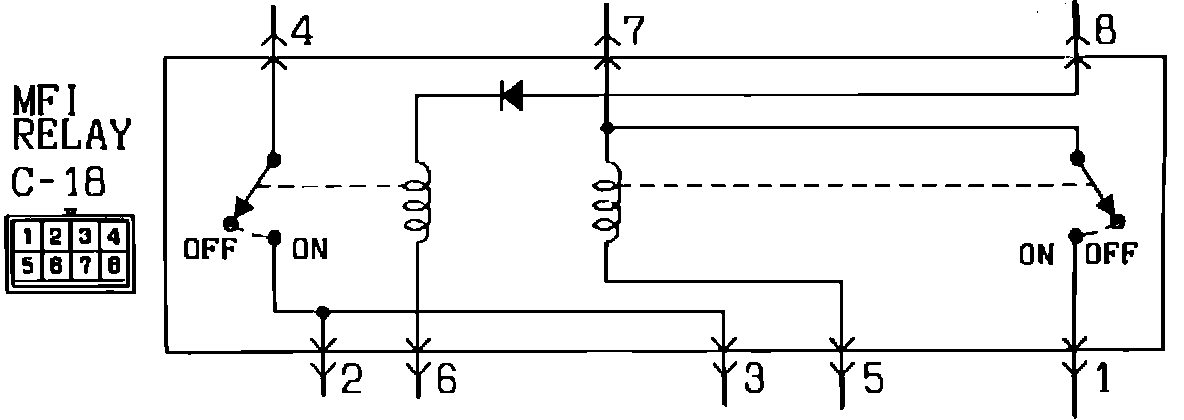In the event of engine stall or other abnormal conditions, the ECU interrupts the ground, opening the relay switch and interrupting the fuel pump power circuit.