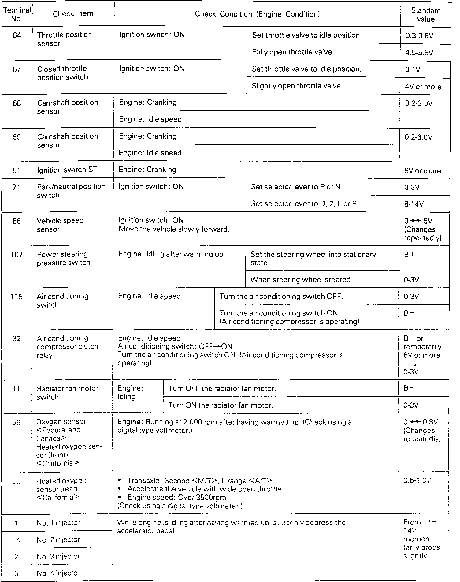 ECU Terminal Voltage Chart (3/3):