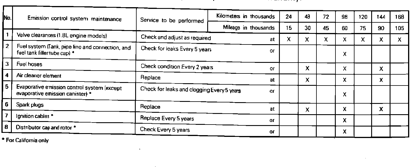 NOTES: Maintenance should be performed at more frequent intervals if: