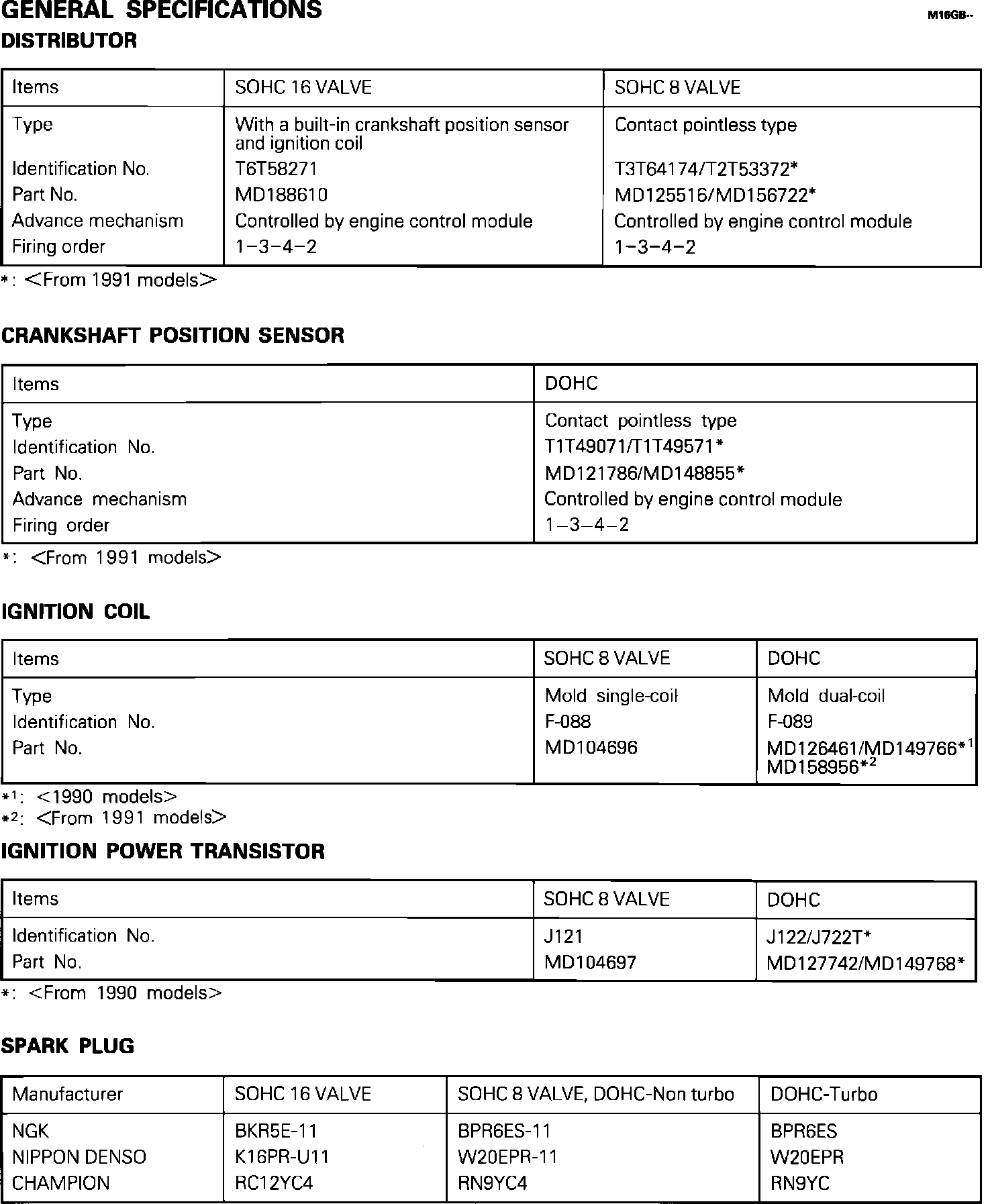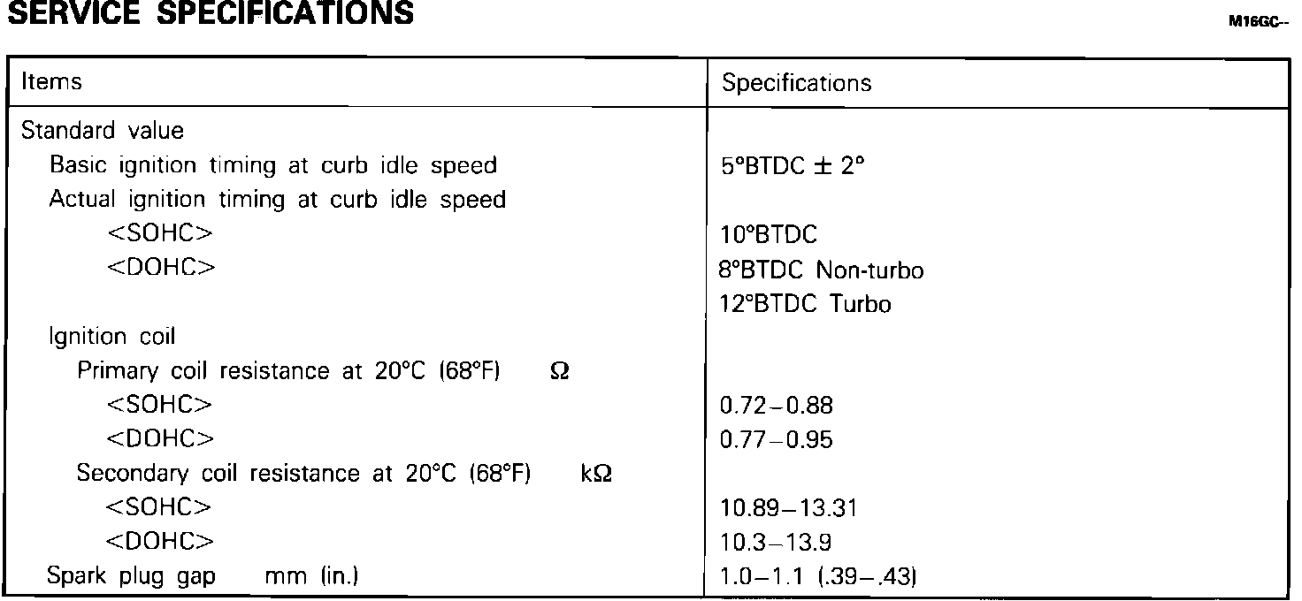 Ignition System: Specifications: