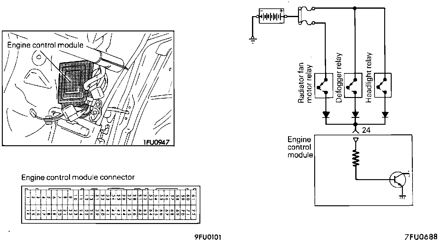 6. Measure the input voltage between the ECM harness connector terminal 24 and ground.