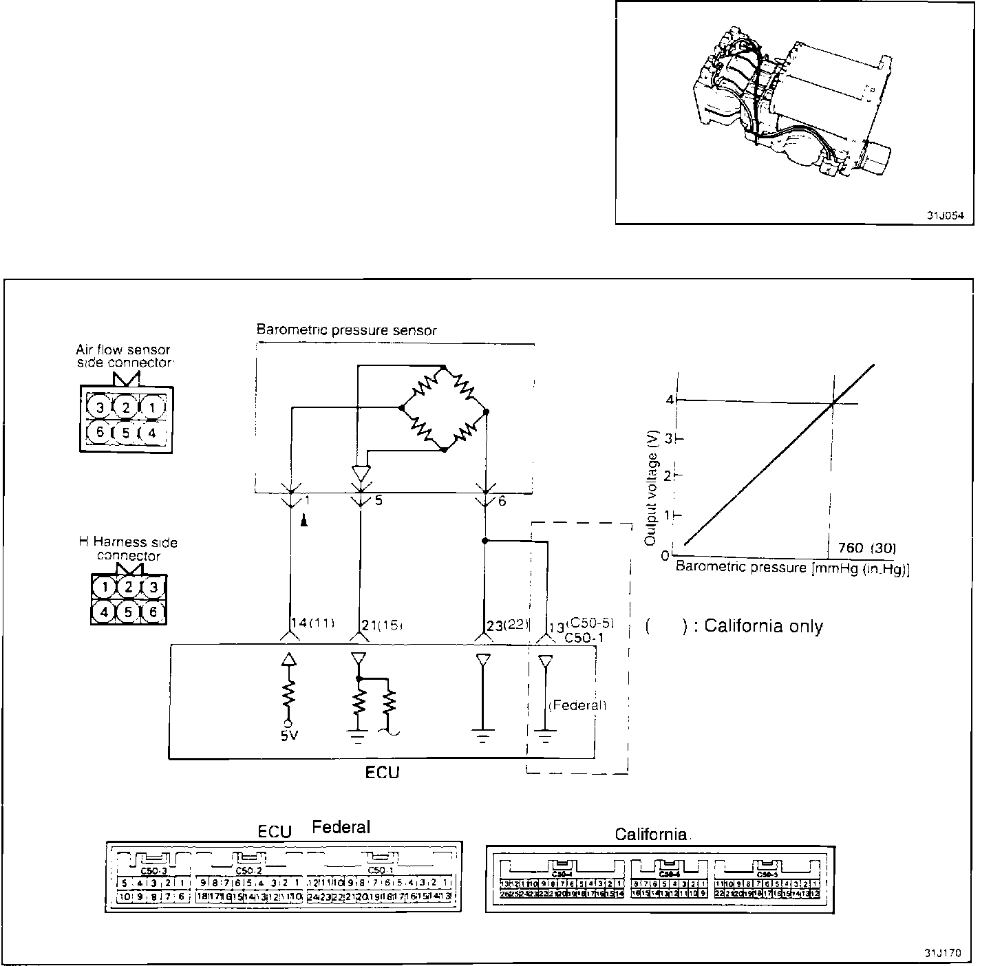 The ECU uses the voltage signal to adjust the air-fuel ratio and ignition timing for the altitude at which the vehicle is running, thus improving driveability at high altitude.