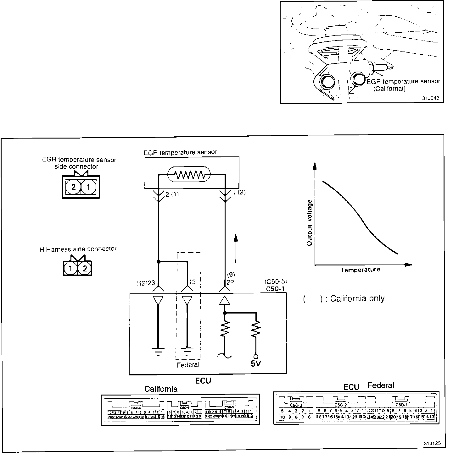 To confirm that the EGR valve is functioning properly, the ECU expects to see an increase in temperature at the sensor whenever the EGR valve is operating. In the event of a malfunction the ECU will set a code and turn the Check Engine Light "on". The resistance value of the sensor increases as temperature decreases.