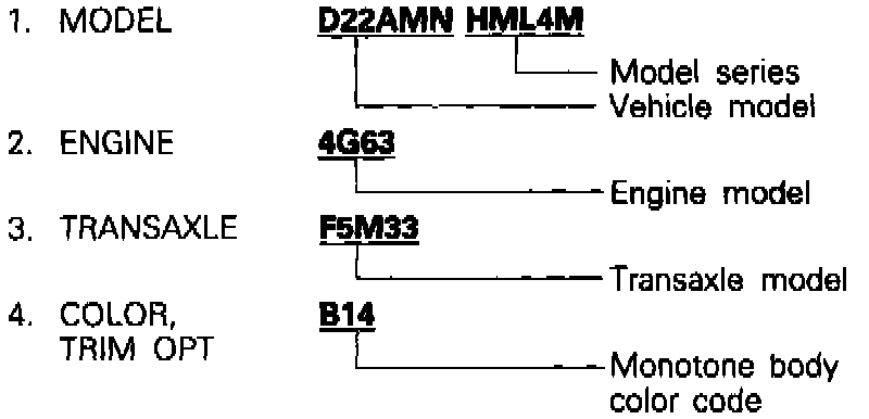 The engine model number is stamped at the front side on the top edge of the cylinder block as shown.