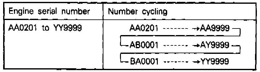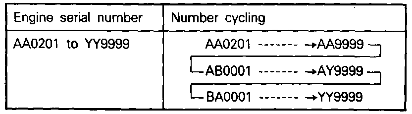 The engine serial number is stamped near the engine model number, and the serial number cycles.