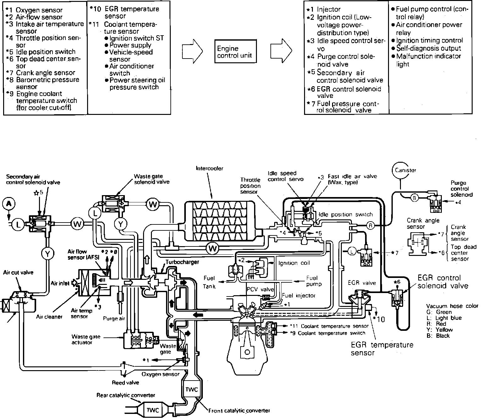 The ECI system is made up of an electronic control unit (ECU), various sensors and output devices. This system controls engine operation (i.e. A/F mixture and ignition timing) to reduce pollutants while maintaining optimum driveability conditions and reducing fuel consumption.