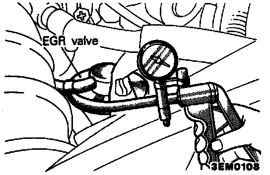 1. Disconnect the vacuum hose (green-striped) from the EGR valve, and connect the hand vacuum pump through the three-way terminal.