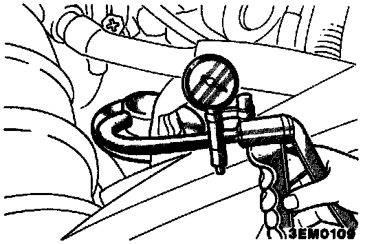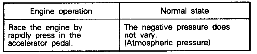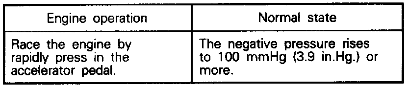 4. When a negative pressure of 215 mmHg (8.5 in.Hg.) is applied during idling, check that the engine stops or idles unstably.