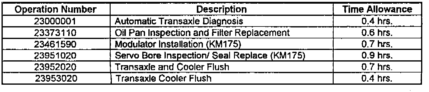 To be reimbursed for diagnosing and replacing a remanufactured automatic transmission, enter a normal "W" claim through the Diamond Network System. Be sure to enter the applicable warranty reman transaxle part number and the related labor operation on Line "A" of the claim. Most labor operation codes can be found in the Warranty Policy & Procedures Manual. Additional labor operation codes that apply to this program are identified below.