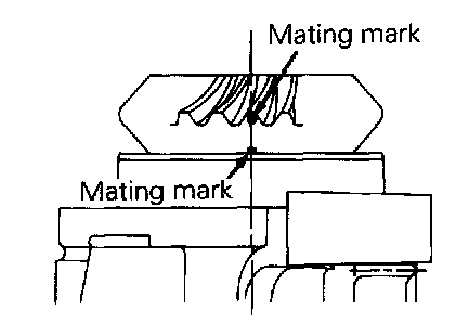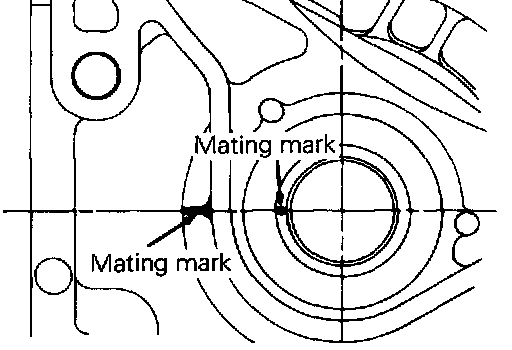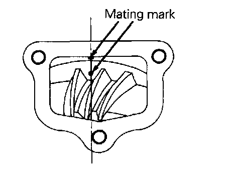 (6) With the mating marks aligned as in step (3) confirm that the transfer case and drive bevel gear mating marks are matched looking from the cover.