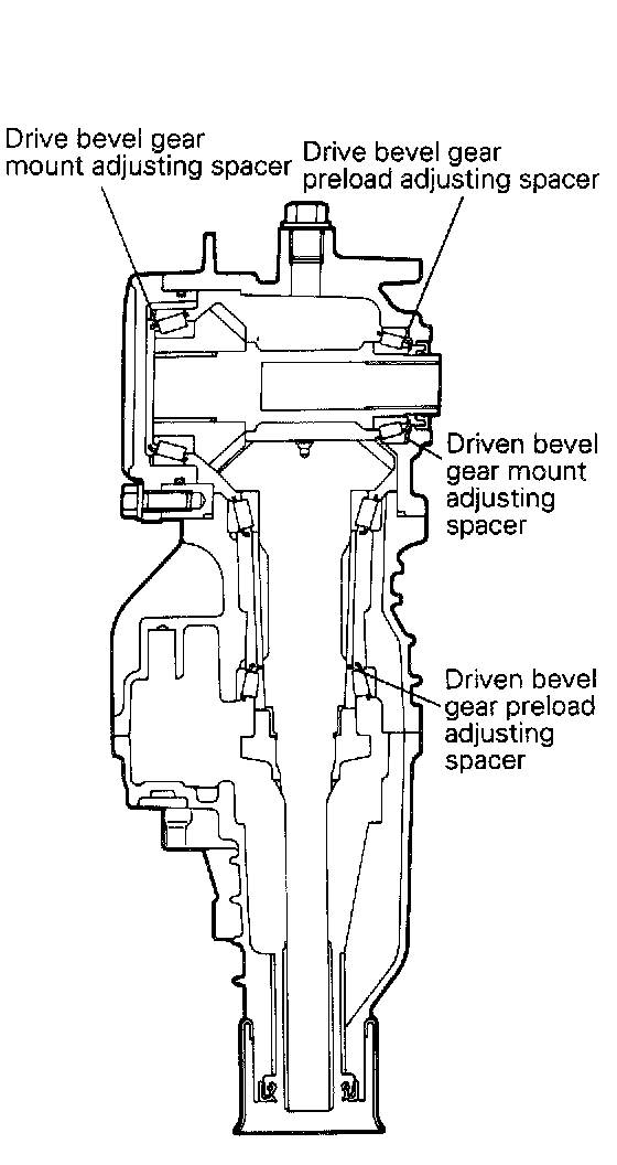 - When the driven bevel gear height is too large even if the thickest driven bevel gear mount adjusting spacer 0.52 mm (.025 in.) is used: