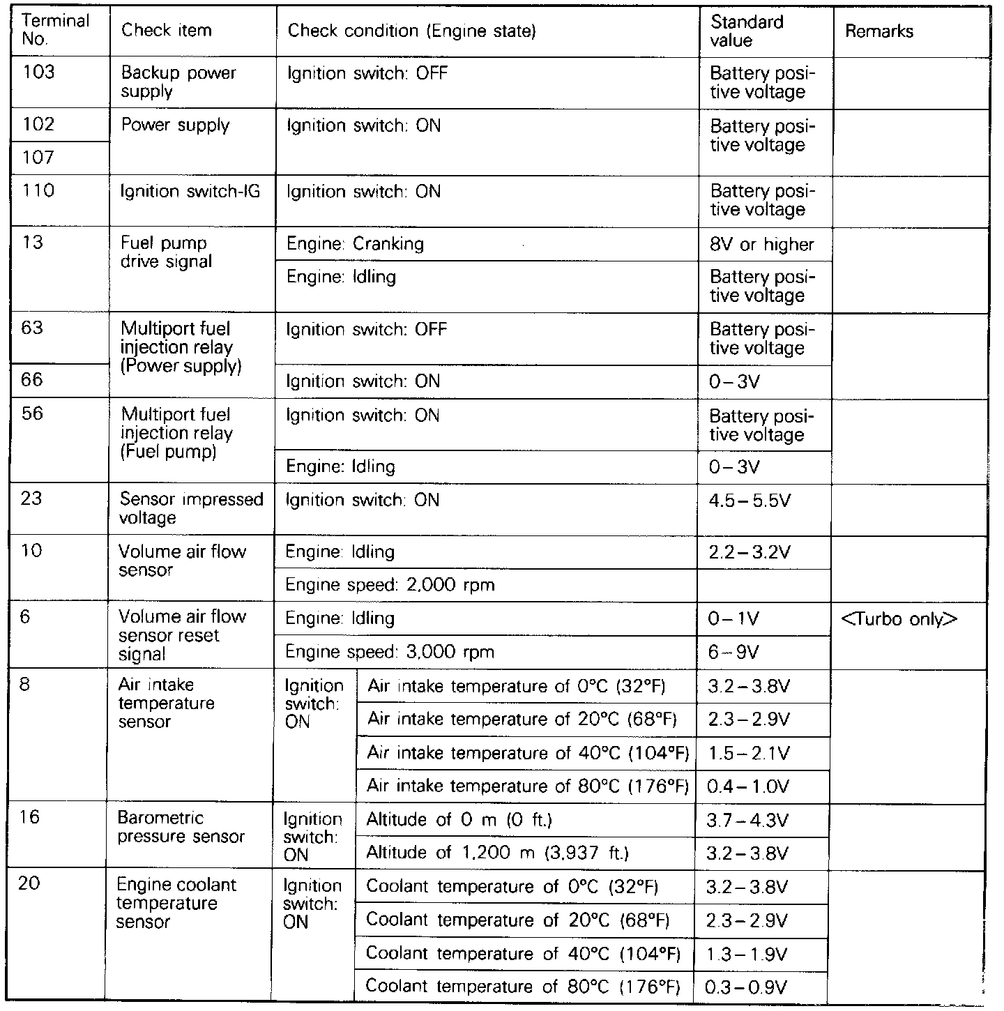 ECM Terminal Voltages 2.0l: