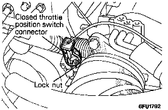 7. Securely tighten the lock nut while holding the closed throttle position switch so that it won't turn.