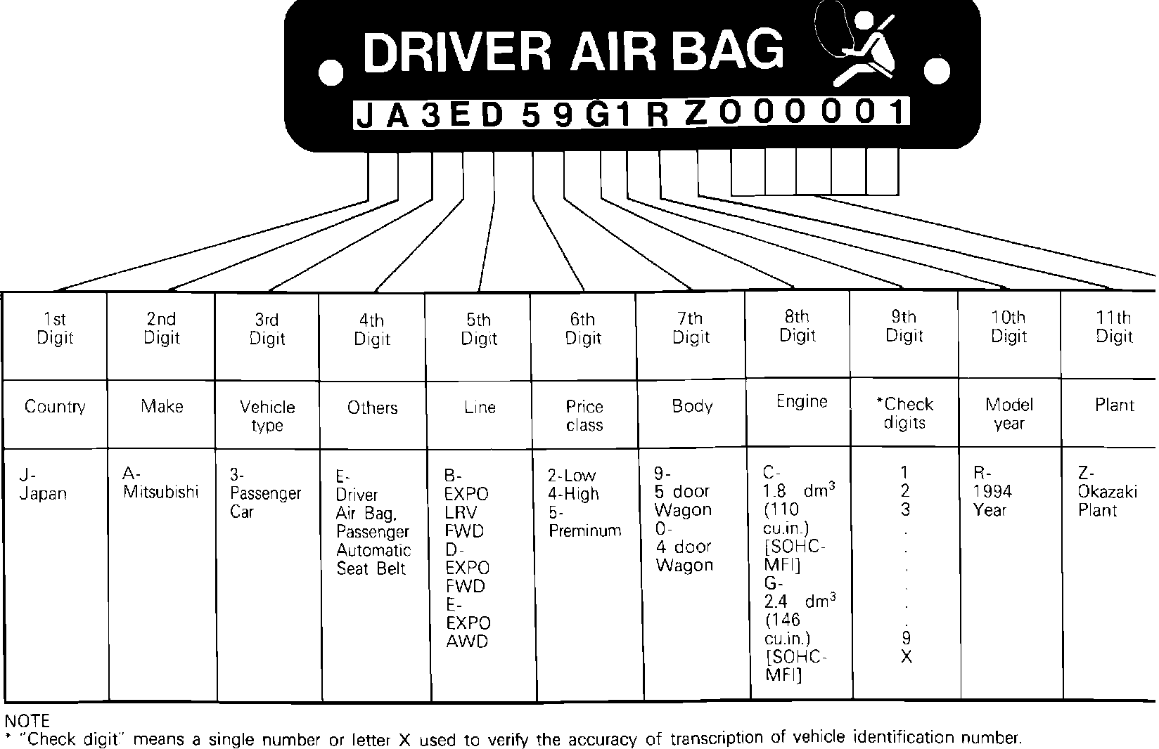 ��8Vehicle Identification Code Chart Plate: