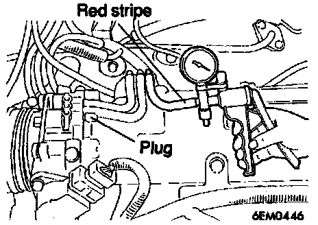 1. Disconnect the vacuum hose (red stripes) from the throttle body and connect it to a hand vacuum pump.