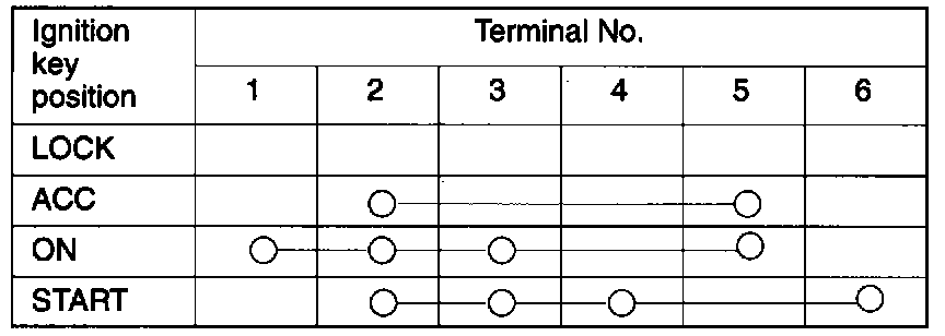 2. Disconnect the wiring connector from the ignition switch, and connect an ohmmeter to the switch side connector.