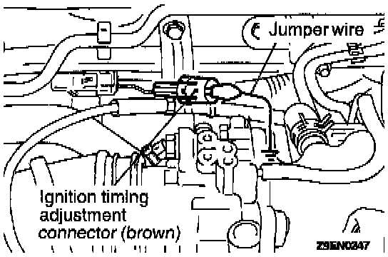 13. Stop the engine, remove the jumper wire from the ignition timing adjustment connector (brown), and return the connector to its original condition.