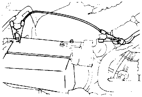 1. With the engine stopped, connect a lead wire with alligator clips to the terminal for ignition-timing adjustment (located in the engine compartment), and ground it.