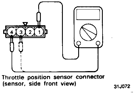 5. If the resistance is out of specification, or fails to change smoothly, replace the Throttle Position Sensor.