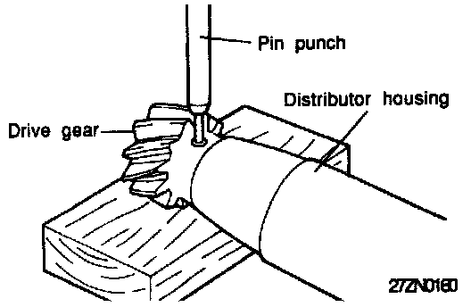 10. Make a position identification mark on the Distributor shaft (for the drive gear, to prevent 180° out of alignment on reassembly).