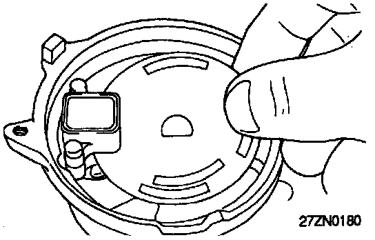 1. After coating the shaft with a small amount of engine oil, insert the shaft into the Distributor housing.
