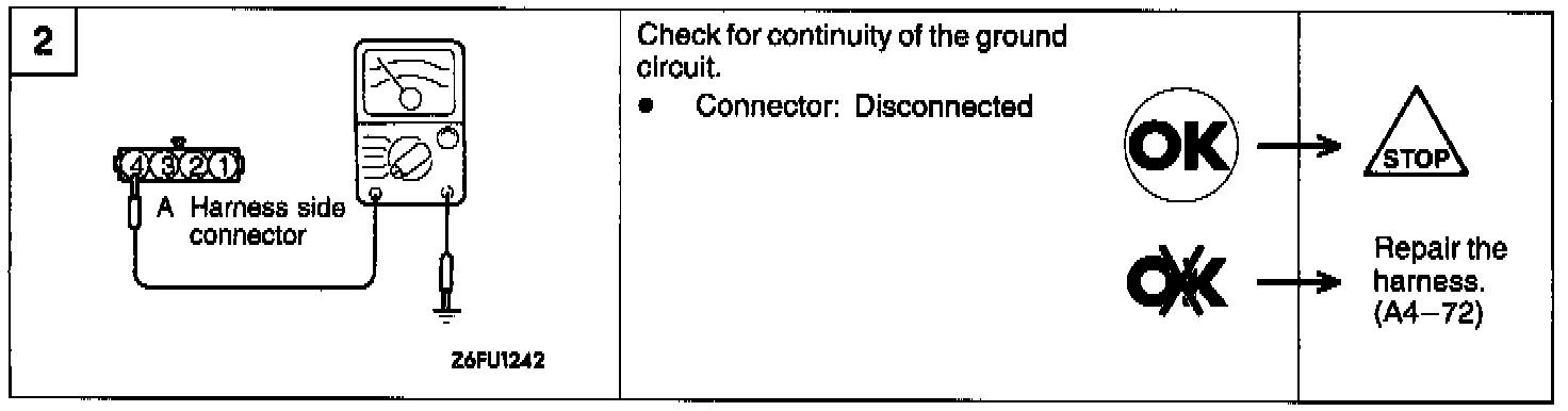 (3) Check the continuity across the throttle position sensor connector terminal (Sensor ground) and (3) (Closed throttle position switch).
