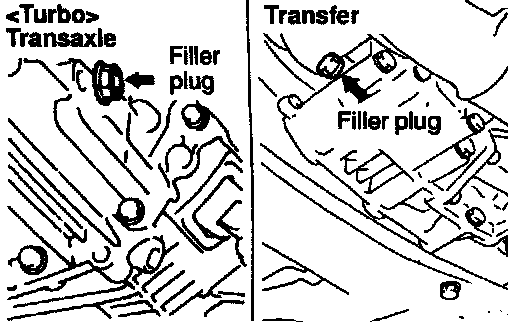 MANUAL TRANSAXLE (include transfer) (Inspect oil level)Inspect each component for evidence of leakage, and check the oil level by removing the filler plug. If the oil is contaminated, it is necessary to replace it with new oil.