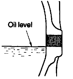 The level must be 4 mm (.157 in.) or less under the lower edge of the filler plug hole.